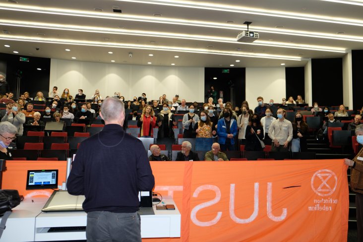 Students and climate activists disrupt Z Energy CEO's lecture at the University of Auckland